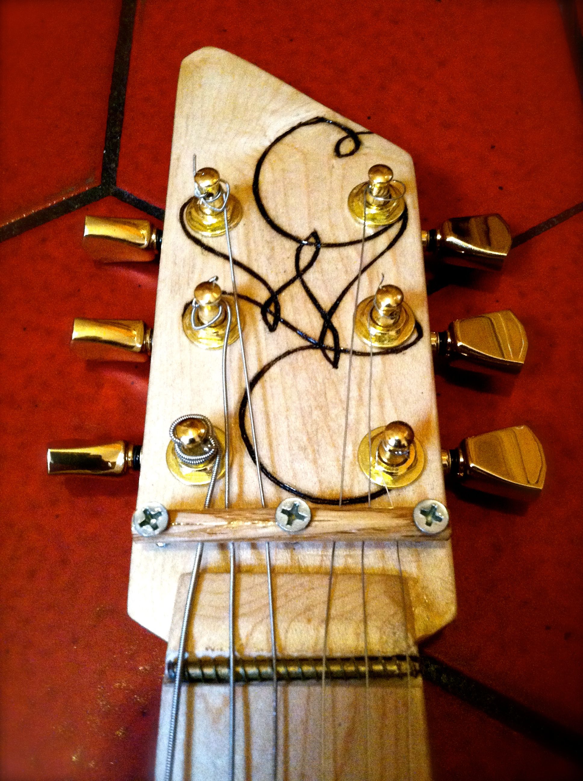 February 4, 2014 by fivepointsinstruments Goldie ~ 6 String Guitar Goldie ~ 6 String Guitar 21 Frets Maple Neck/Fingerboard Gold Hardware Lipstick Pickup in Neck Position Piezo Pickup in Bridge Position 3 Position Switch Gold Hardware Share this: Share on X (Opens in new window) X Share on Facebook (Opens in new window) Facebook Like Loading... Related