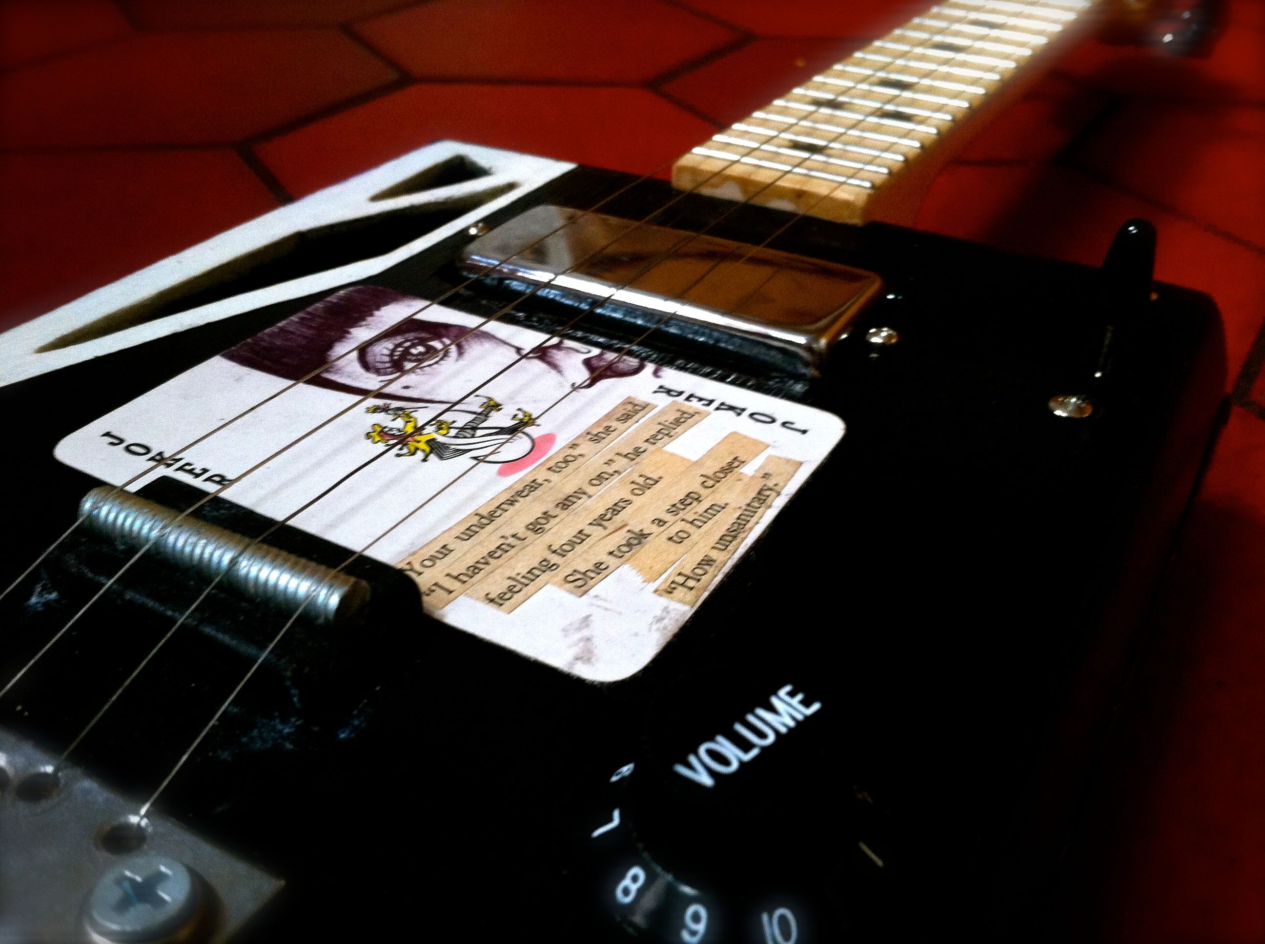 The pulp playing card was designed by NYC artist/actress/washtub bass player/my lovely wife Jessi Blue Gormezano. It says: