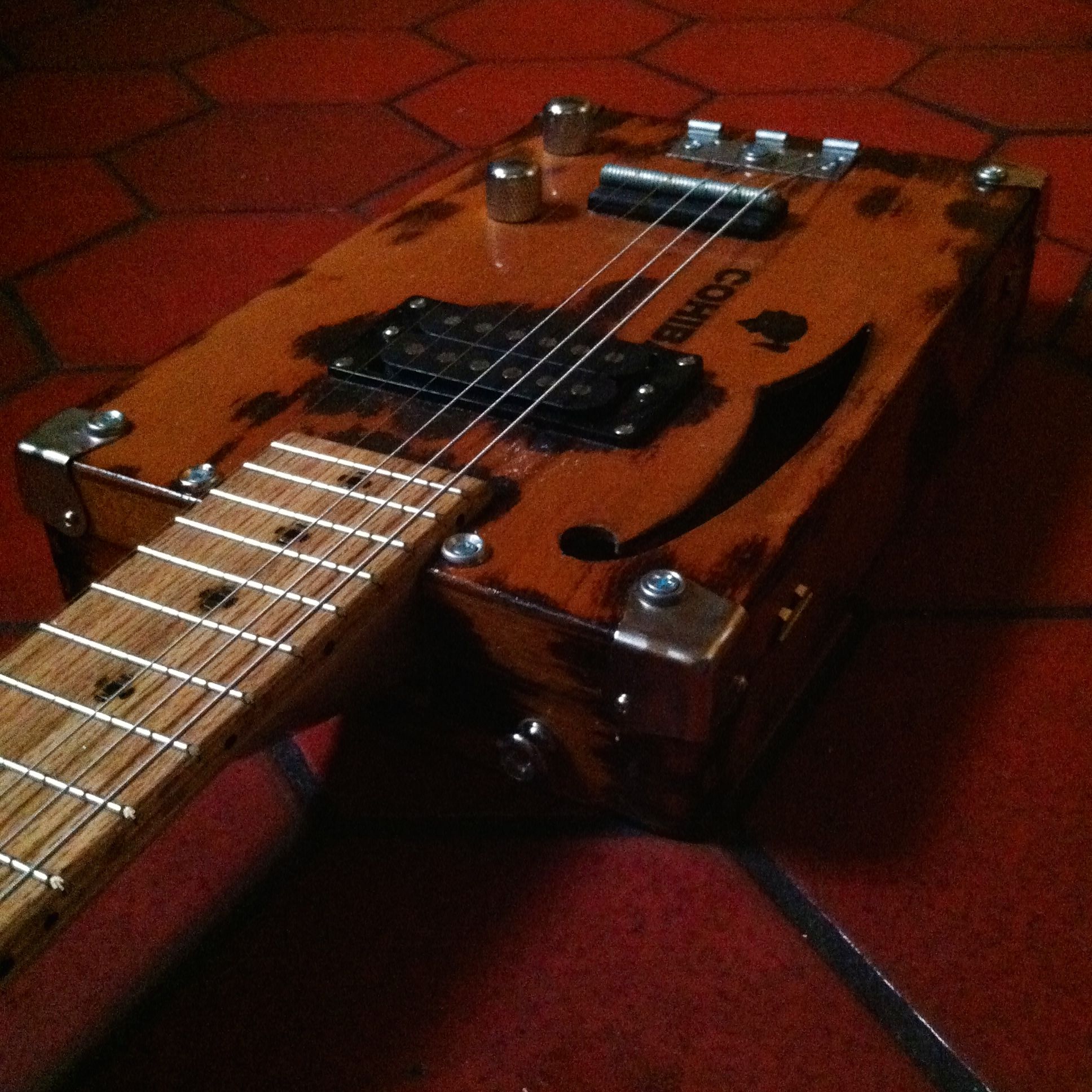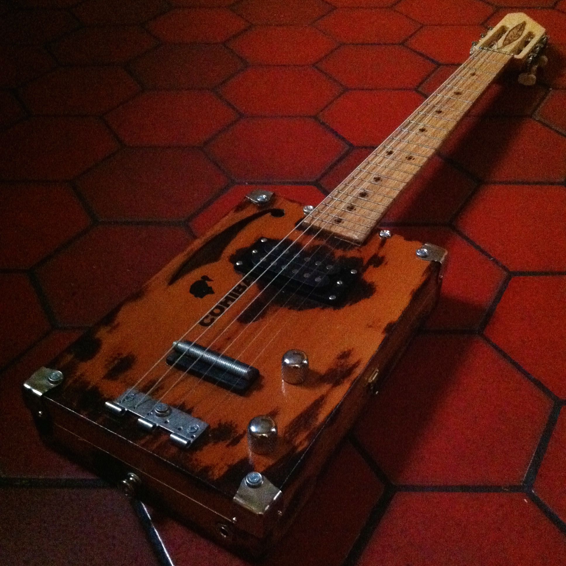 Meet the Cohibacaster H, a screaming electric made from a cedar Cohiba box. Maple and red oak neck, chrome hardware and a single humbucker in the neck position to give the ultimate thick and crunchy sounds any rock ‘n roller is looking for. Volume/tone controls allow for all kinds of sounds.